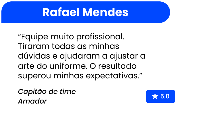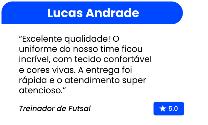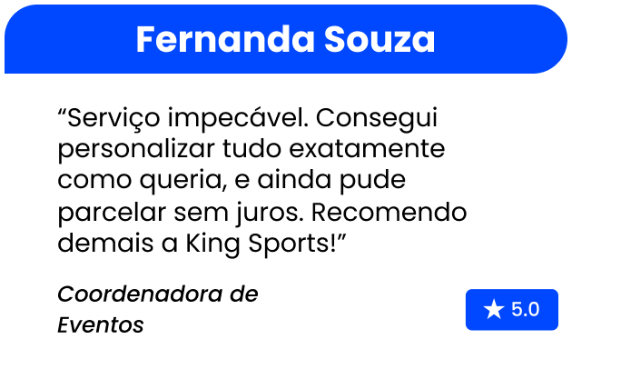 A King Sports é especialista em uniformes e materiais esportivos personalizados. Com qualidade, agilidade e atendimento próximo, ajudamos equipes, empresas e eventos a transformarem suas ideias em produtos únicos. Aqui, cada detalhe é pensado para valorizar sua identidade e performance.